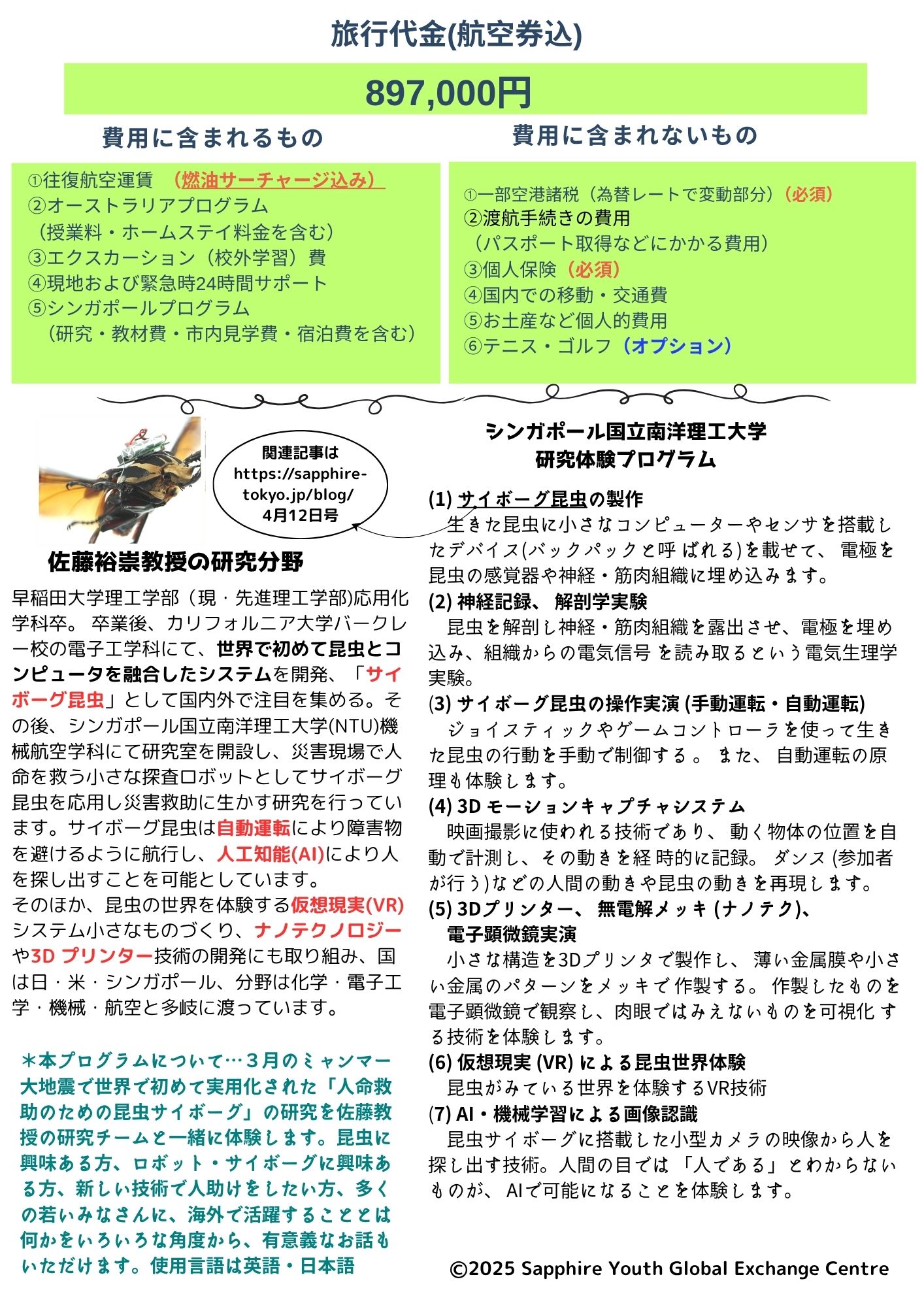 シンガポールでは南洋理工大学の院生による英語でのシンガポール市内見学(8/17日)と先端科学研究授業に参加(8/18)